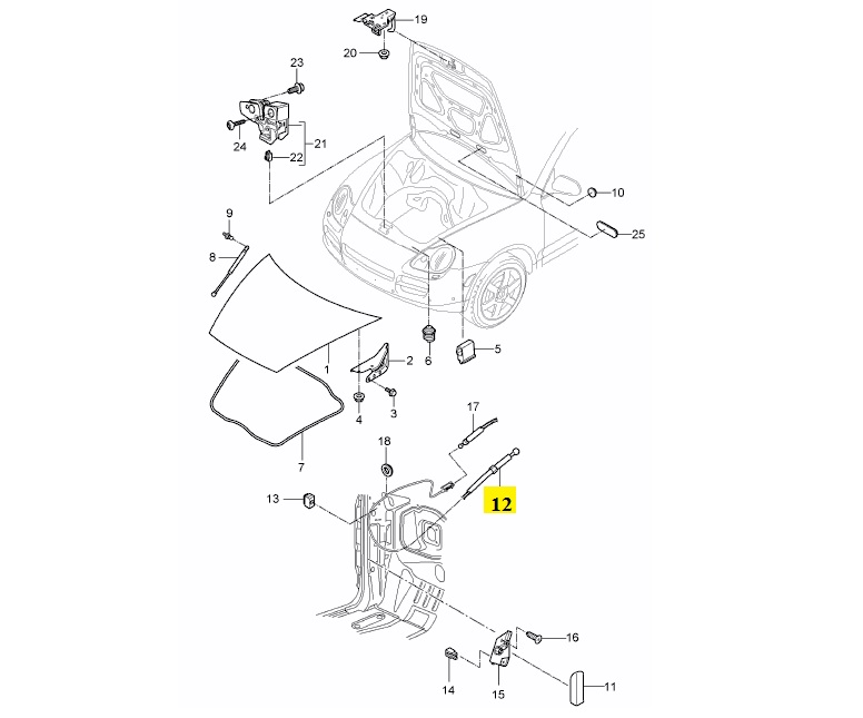 IMS GENUINE PORSCHE NEW FRONT BONNET CABLE 95551153501 – PORSCHE CAYENNE 955, 957 2002-2010