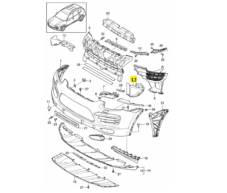 IMS GENUINE PORSCHE NEW FRONT UPPER BUMPER AIR DUCT 958505333009B9 – PORSCHE CAYENNE 958 2011-PRESENT